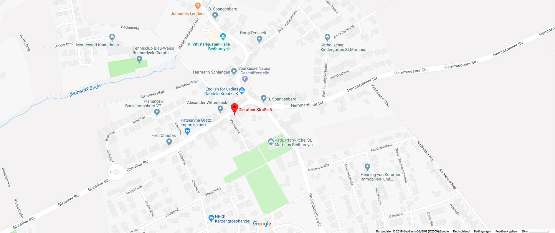 Zur Nutzung der Funktionen von Google Maps ist es notwendig, Ihre IP-Adresse zu speichern. Diese Informationen werden in der Regel an einen Server von Google in den USA übertragen und dort gespeichert. Der Anbieter dieser Seite hat keinen Einfluss auf diese Datenübertragung. Wenn Google Maps aktiviert ist, kann Google zum Zwecke der einheitlichen Darstellung der Schriftarten Google Web Fonts verwenden. Beim Aufruf von Google Maps lädt Ihr Browser die benötigten Web Fonts in ihren Browsercache, um Texte und Schriftarten korrekt anzuzeigen.
